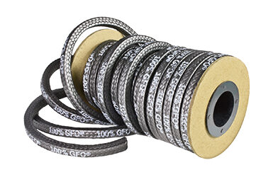 Braided packing, also called compression packing and rope packing, is a rope-like material cut into rings that wrap around the rod. When installed, the compression force generated by tightening the gland produces radial pressure. Since braided packing expands radially when compressed, the gland tolerances can be more flexible than when using vee packing. Braided packing is usually produced in a square or rectangular cross-section and is available in a wide range of materials. Hi-Tech Seals distributes braided packing based on weight, measured in pounds.